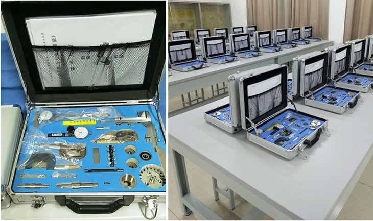 零件尺寸誤差測量組合實訓(xùn)裝置是根據(jù)《公差配合與技術(shù)測量》課程的基本教學(xué)要求,精心設(shè)計的一套零件尺寸誤差檢測組合訓(xùn)練產(chǎn)品。它由檢測零件、檢測工量具、配套圖紙及實訓(xùn)指導(dǎo)書組成。其目的是通過零件尺寸誤差的檢測,加深學(xué)生對尺寸誤差及尺寸公差基本概念的了解,掌握尺寸誤差測量的方法的技能,為公差配合在后續(xù)課程中的應(yīng)用奠定扎實的基礎(chǔ)。