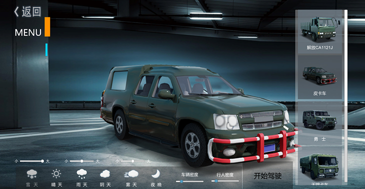 圖二十:天氣、車輛、行人自由切換功能界面