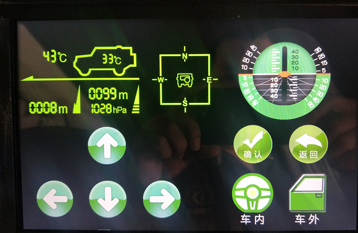 模擬器右邊觸摸屏: 確定、返回、上下左右功能鍵選擇,車內(nèi)和車外景切換。