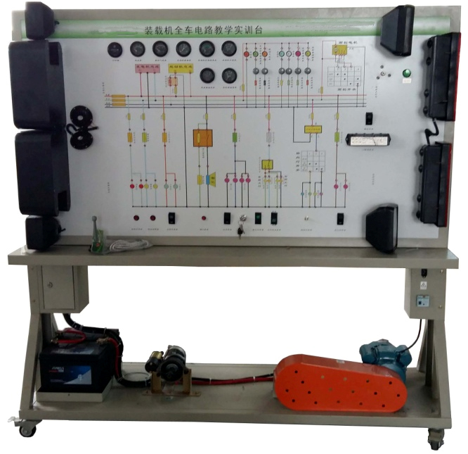 裝載機整車電氣實訓設備采用 全新ZC50裝載機 整車電器實物為基礎,充分展示儀表系統、燈光系統、雨刮系統、喇叭系統、發(fā)動機電器系統、起動系統和充電系統等電器各系統的組成結構和工作過程。